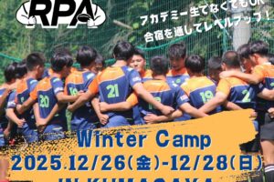 毎年ご好評いただております、冬合宿を本年度も開催いたします。 この合宿ではラグビースキルはもちろんのこと、他教室との交流、集団生活での規律面や 協調性を学べます。 日程等は下記通りです。皆様のご参加お待ちしております。…
